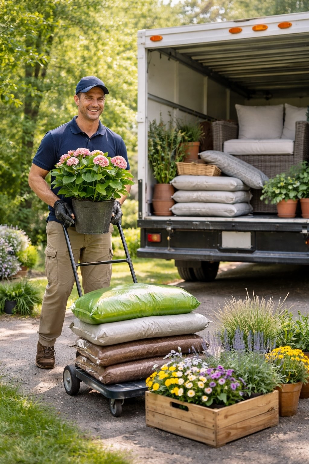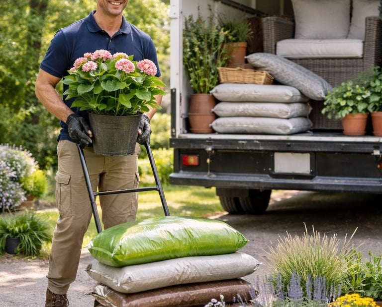 Heavy soil, garden materials, backyard furniture, placed exactly where your yard needs them.